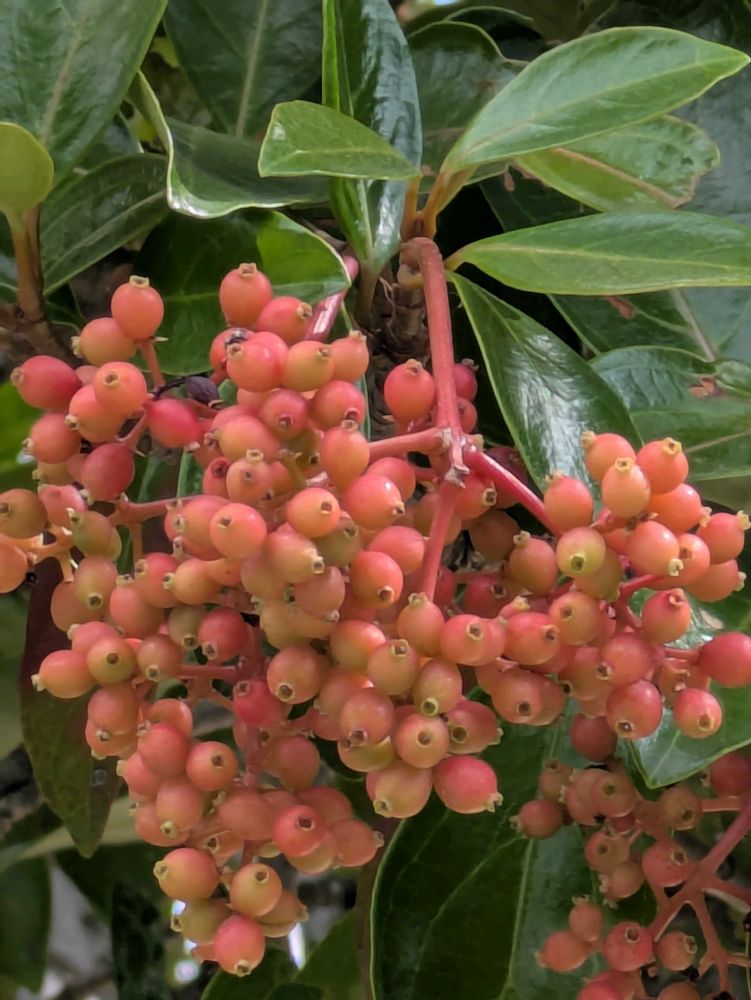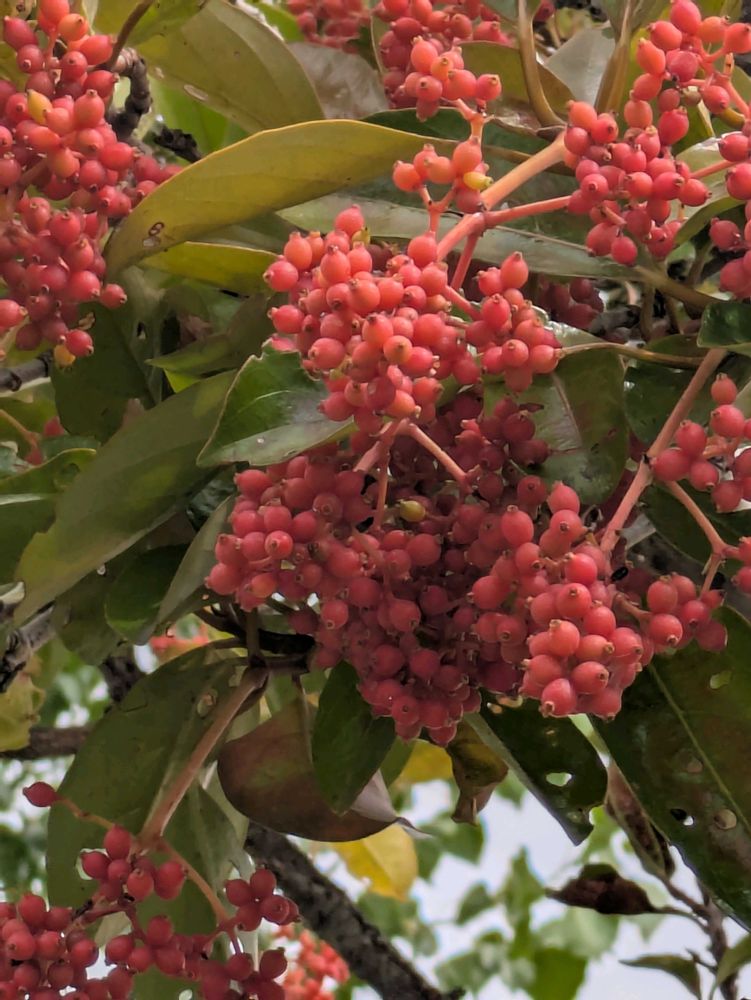 小学校校庭で珊瑚樹の実が赤く色づいていました。