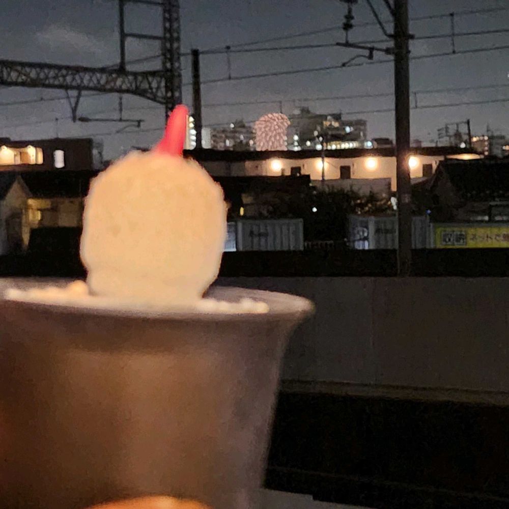 写真分かりにくいけど江戸川の花火と月世界🙂