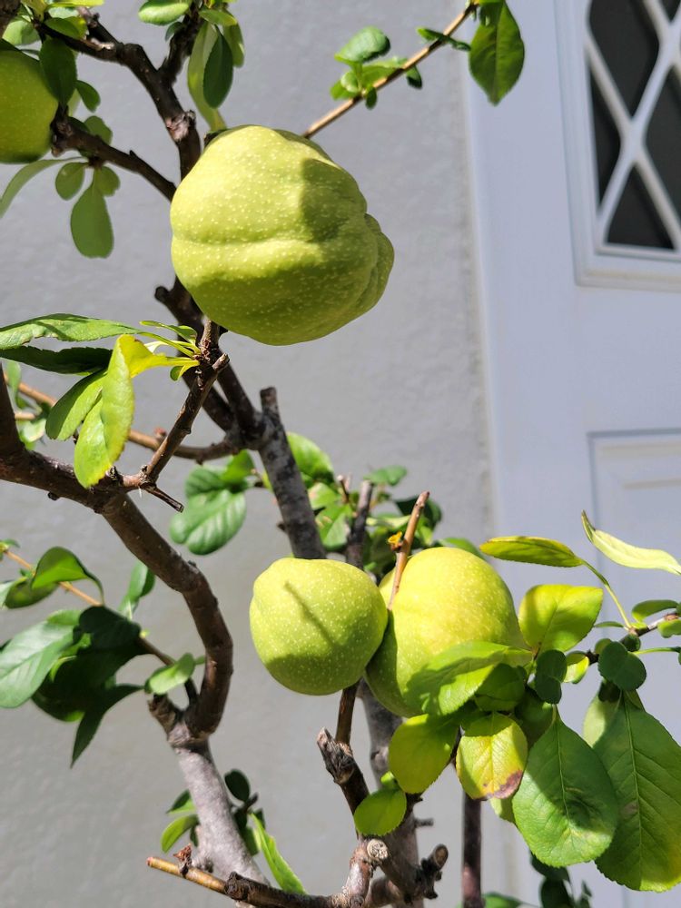 近くの家のボケは、ほぼ同じぐらいの木だけど、10個以上なっています。