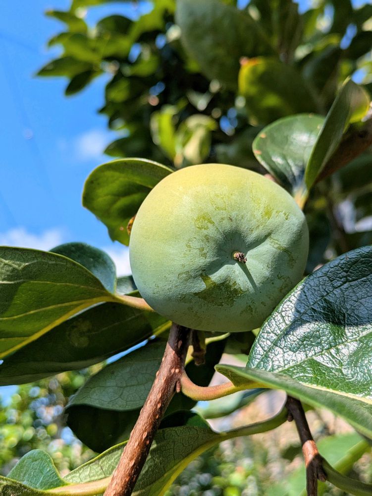 暑い中 庭の「カキの実」が大きくなってきました🎵