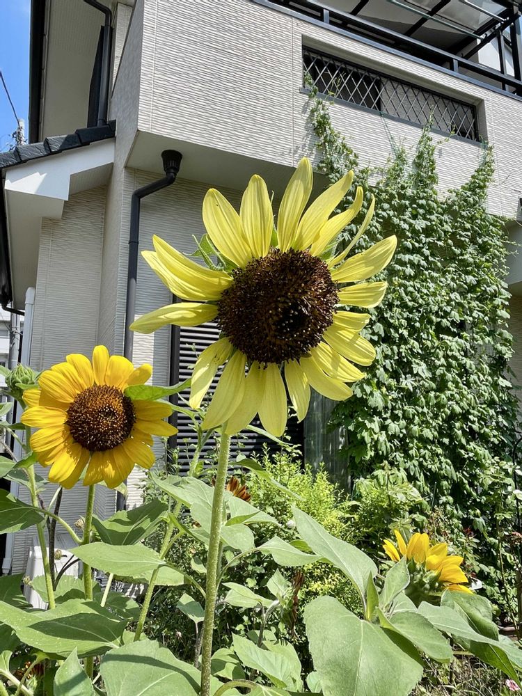 ひまわり🌻綺麗ですね〜。うちのは暑さにやられてます。かわいそう。😞