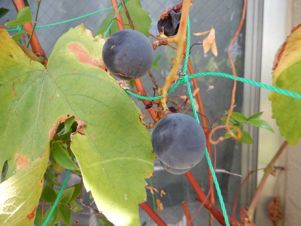 2025年5月19日に投稿したブドウの実が,食べごろになってきたようです.皮の色も紫になったので,ほぼピオーネに間違いないですが,ラベルを付けていないので確定とまではいきません.全部で3粒.心していただきます.