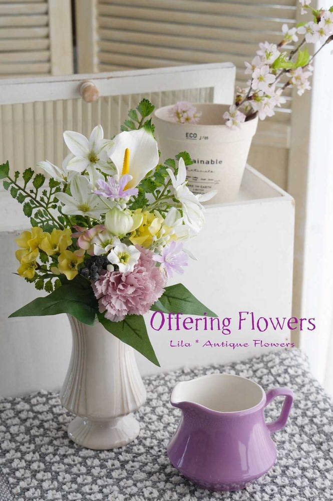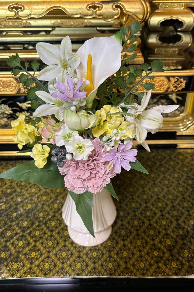 こんな時にと思って、レッスンで作ったアーティシャルフラワーの仏花です