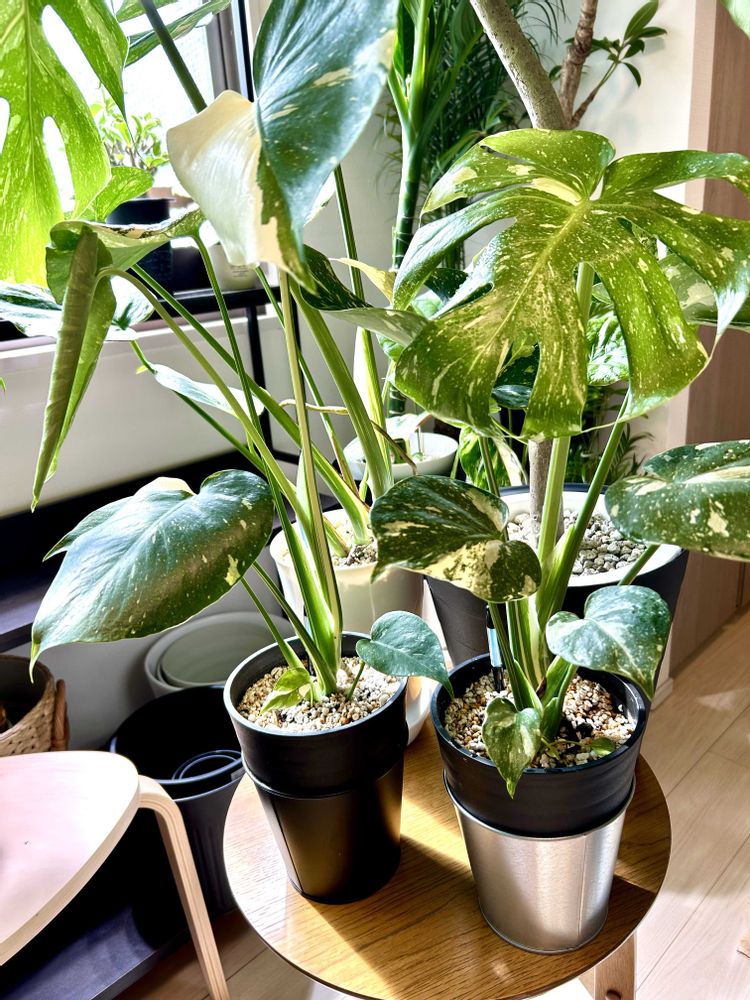 斑入りのモンステラは、どの品種も通常のモンステラよりも葉焼けしやすく、また**暗すぎると斑が消える(先祖返り)**ことがあるため、管理には特に注意が必要です。