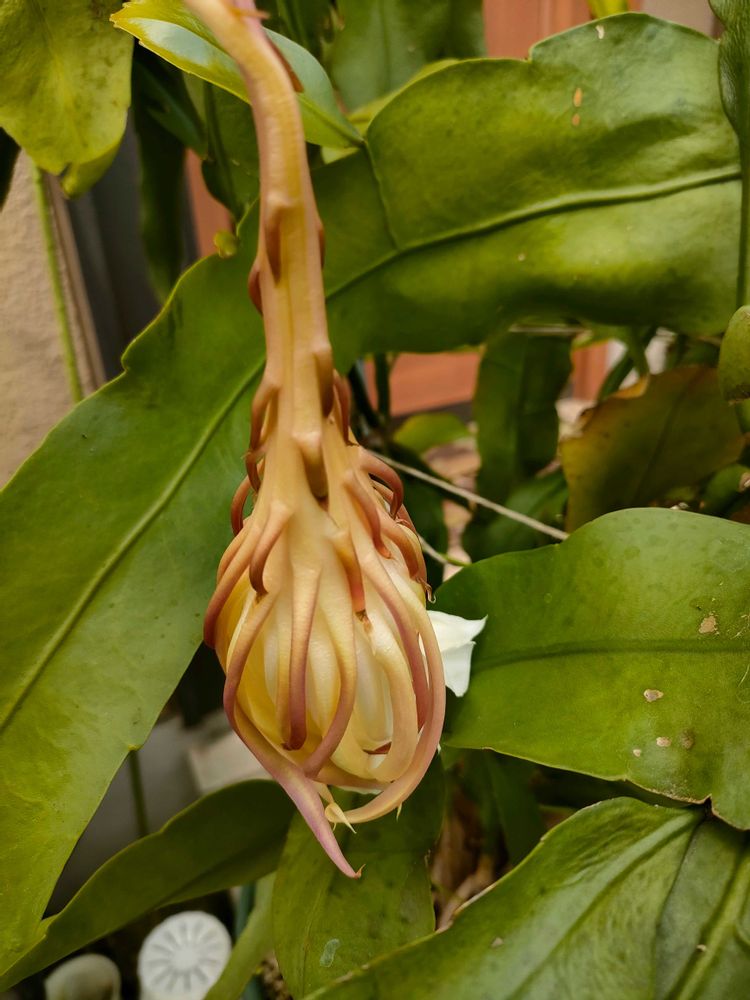 2️⃣昨夜開花した月下美人の朝の姿です、、、戦い済んで夜が明けて🌅状態、お疲れ様でした♡