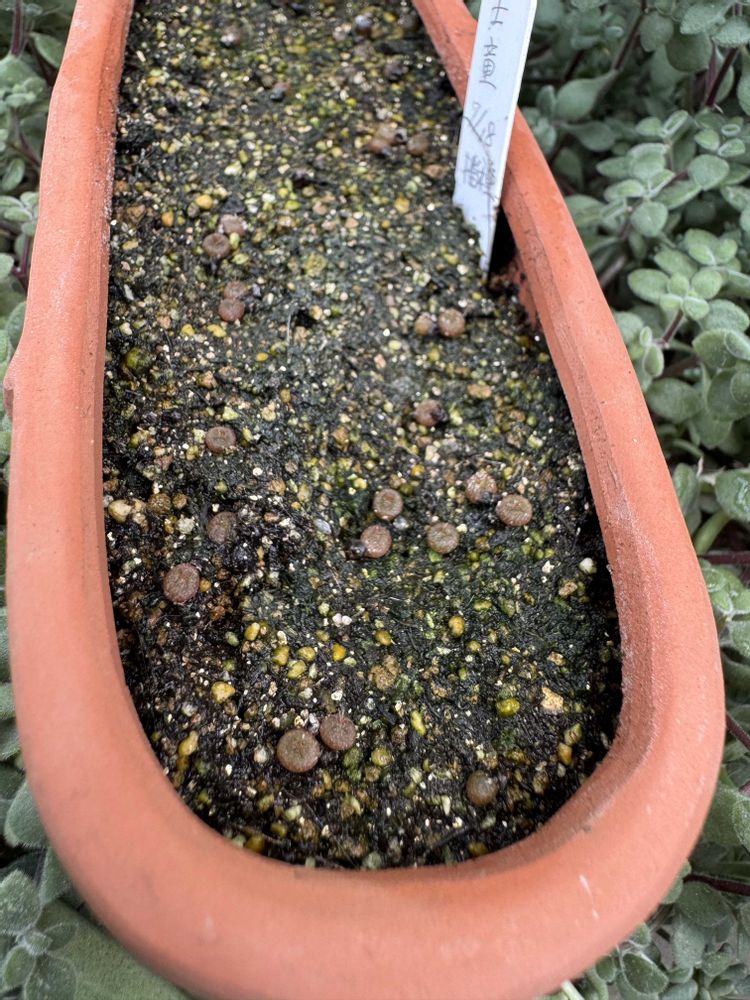 2024年3月22日に交配 2024年7月12日に結実した種を採取 2024年8月14日に種まき 2024年9月に発芽 その後、植え替えをして現在2025年7月に至る 今後の成長はアプリで記録 花が咲くまで継続