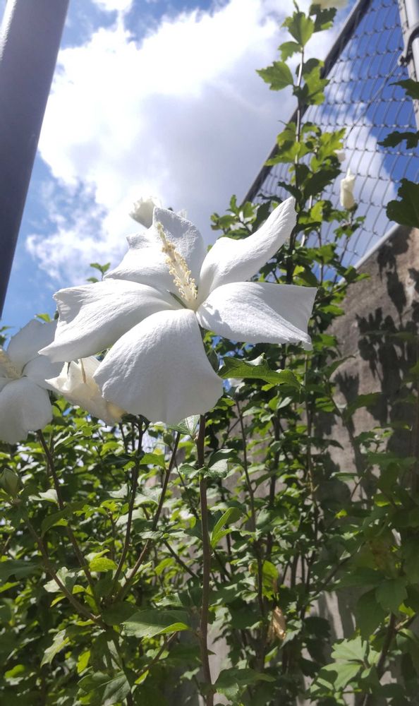 行く雲に 負けじと飛ぶか 白ムクゲ