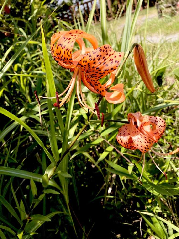 花は橙色で濃褐色の斑点が特徴で、花弁は強く反り返る!