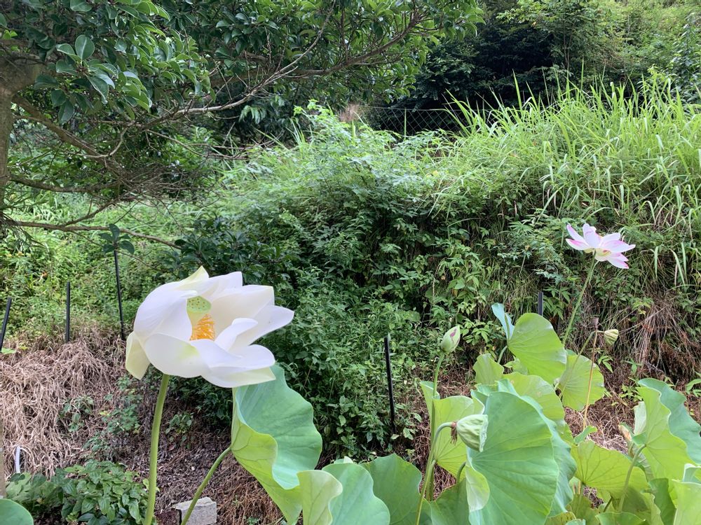 今朝の一天四海🪷古代蓮はまだ咲いてましたが、小舞妃は散って、また2つ開花しました😀カールくん🐕けさは足腰立たず、庭を転げながら少し歩いただけ💦お昼寝してるあいだに鮎の網に行ってきました😀網の解禁日でしたが、みなさん引き上げたあとで少ししか獲れませんでした😅💦