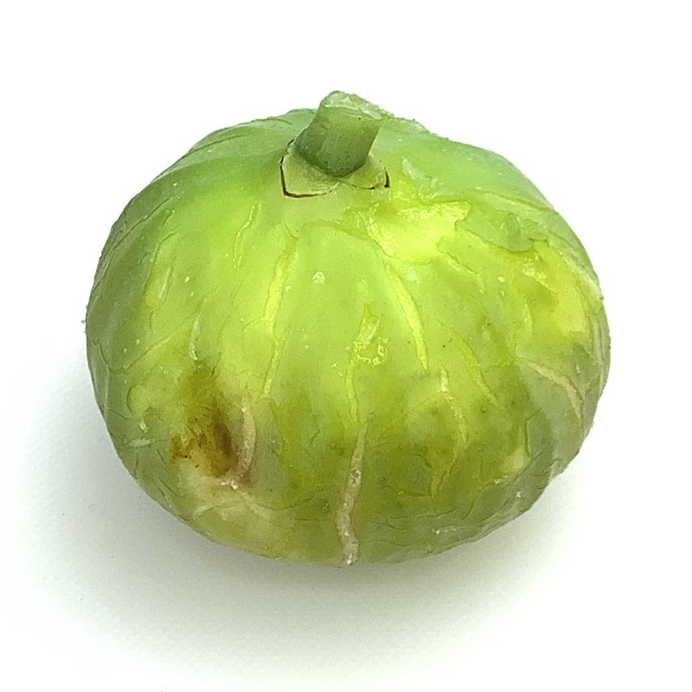 ホワイトイスキアの秋果が軟らかくなって来ましたので、今日初めて収穫しました 本品種のSNSによる秋果の収穫期よりは1月早い収穫になりました 果実は24gあり、果肉は甘い飴を食べているような味わいで、熟しておりました
