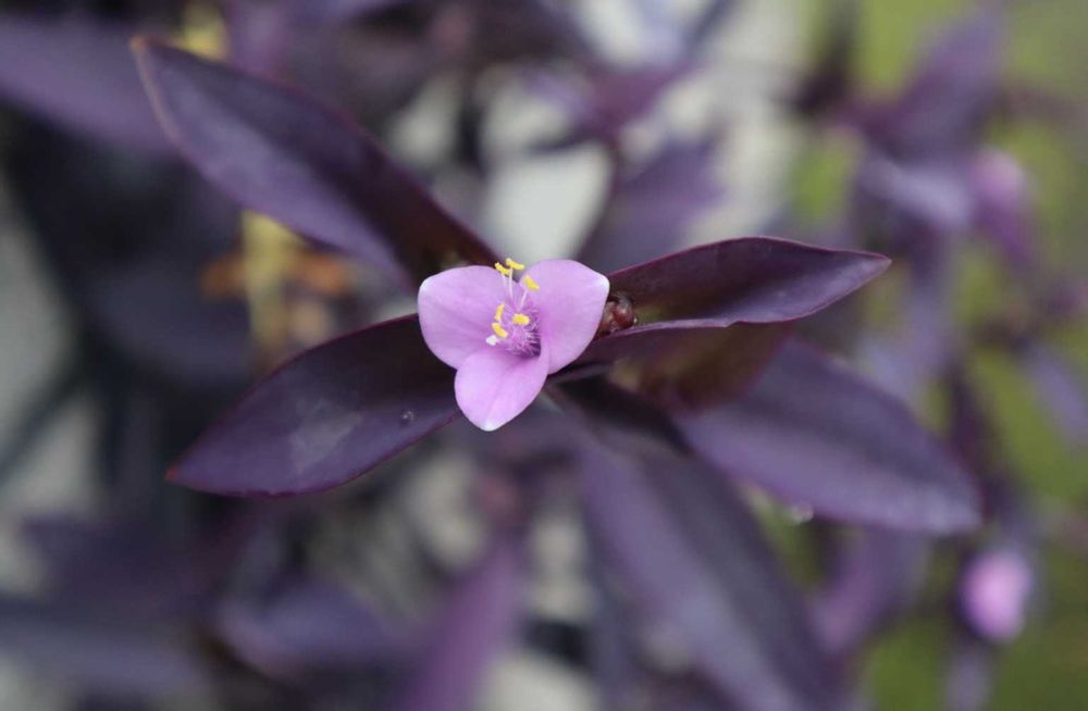 濃い紫色の葉っぱを精一杯広げて咲いているような姿が微笑ましいです。ピンクのお花が可愛く見えます。