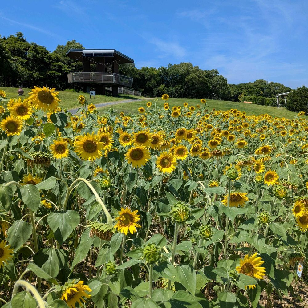 ひまわり畑とあおいちゃん、さくらちゃんです😄毎日、暑いですね😅