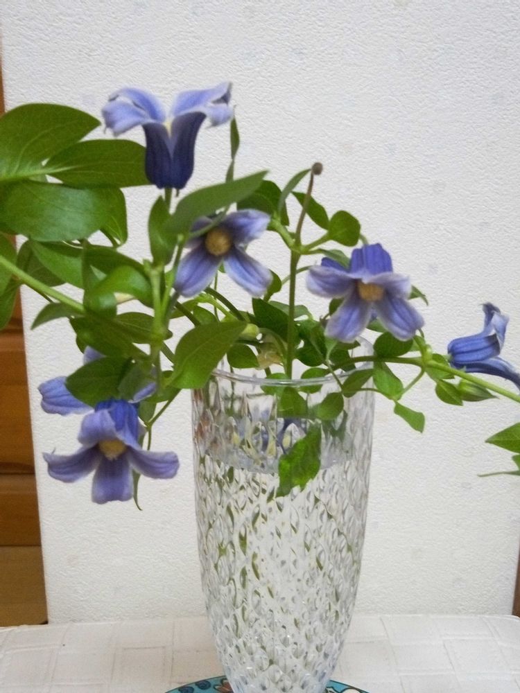 ③④クレマチス ロウグチはピークを過ぎたので ✂️してグラスに生けてみたら いつもと違う角度でこれも又可愛いですね💙