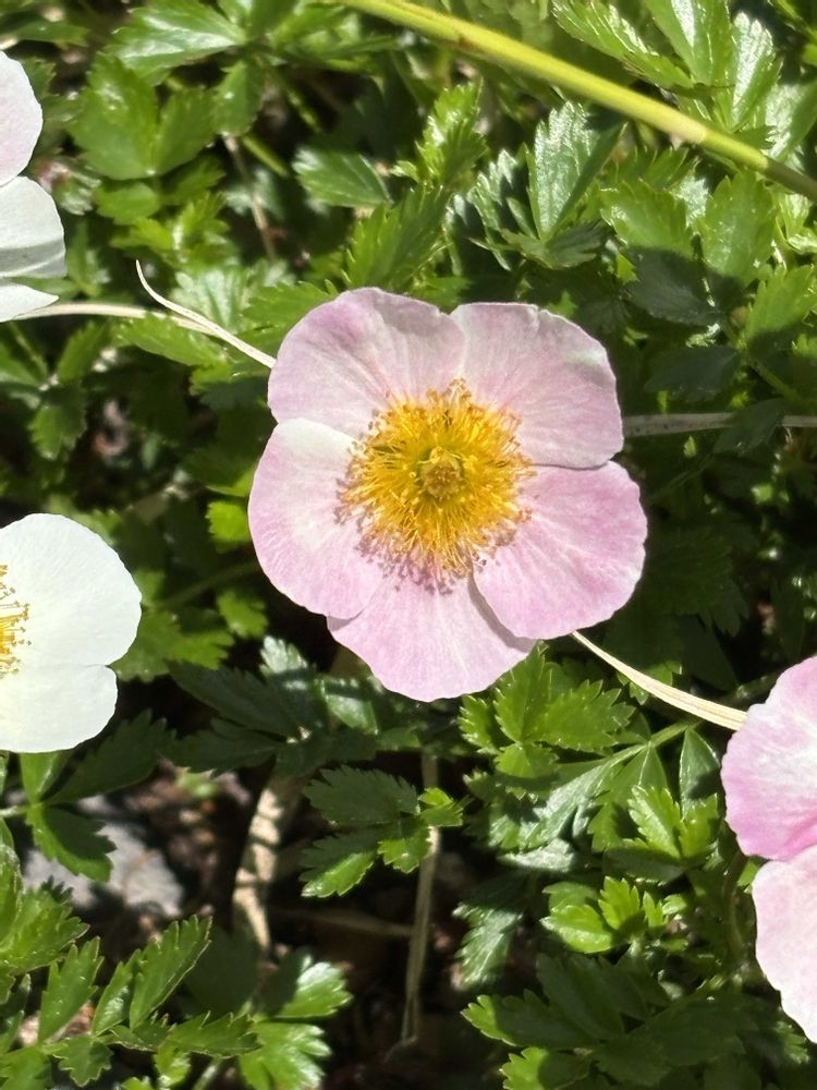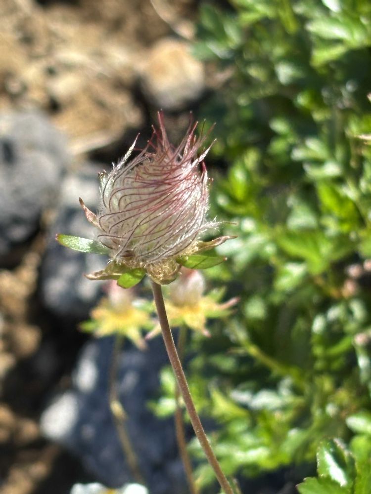 ⑤よく観察してると、立山では白花の中にタテヤマチングルマと呼ばれるピンク色の花に出会うことがあります。初めましてです🔰ピンク色の濃淡は薄いのから濃いものまで様々でした。写真は中ぐらいかな?専門的には白花と区別はしないのだとか