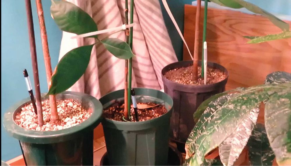 パキラとキンモウコウをメインに育てています。パキラの育て方、①幹に対して大きすぎないスリット鉢。②ナチュールアミのらくらく培養土(観葉植物用)③サスティー。をセットで使うこと。そして、植物育成用LEDライト。1年を通して15℃以上の置き場所。夏の群れ対策として扇風機。水やりのタイミングは春夏秋はサスティーが真っ白になってから早めに、冬場は(室温15℃以上前提)サスティーが真っ白になって、翌々日がいいかと思われ。受け皿の水は捨てますように。水やりの水にはメネデールとハイポネックス(ただし、冬は不要)。そんな感じです。キンモウコウの育て方。パキラに同じく、スリット鉢、ナチュールアミのらくらく培養土(観葉植物用)、ここはパキラとは違うのであえて記載しますが、サスティーは適用外(水やりタイミングの参考にはできない)。置き場所もパキラと同じく通年15℃以上の場所。植物育成用LEDライト。水やりは表土が乾く前にはあげること。参考までですが、じっとりしているほうが調子がいいと思われ。家では夏場は2日に一度、冬場は3日に一度上げてます。受け皿の水は捨てますように。キンモウコウには葉水&肥料は不要です。これらはあくまで私の肌感覚で書いている記述であり、同条件下であっても大きく育つとは限らないことはご了承ください。 何か追加してほしい情報があれば教えてください。 諸事情により(・∀・)イイネ!!のお返しはしておりませんので、お気を悪くしませんように。