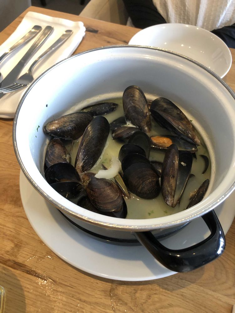 ムール貝はメニューに白ワイン煮とガーリック味の2種類ありますが、ビールに合うガーリック味にしました。とても美味しく、となりのテーブルの人から良い香りがしますね!と言われました。😋😄👌