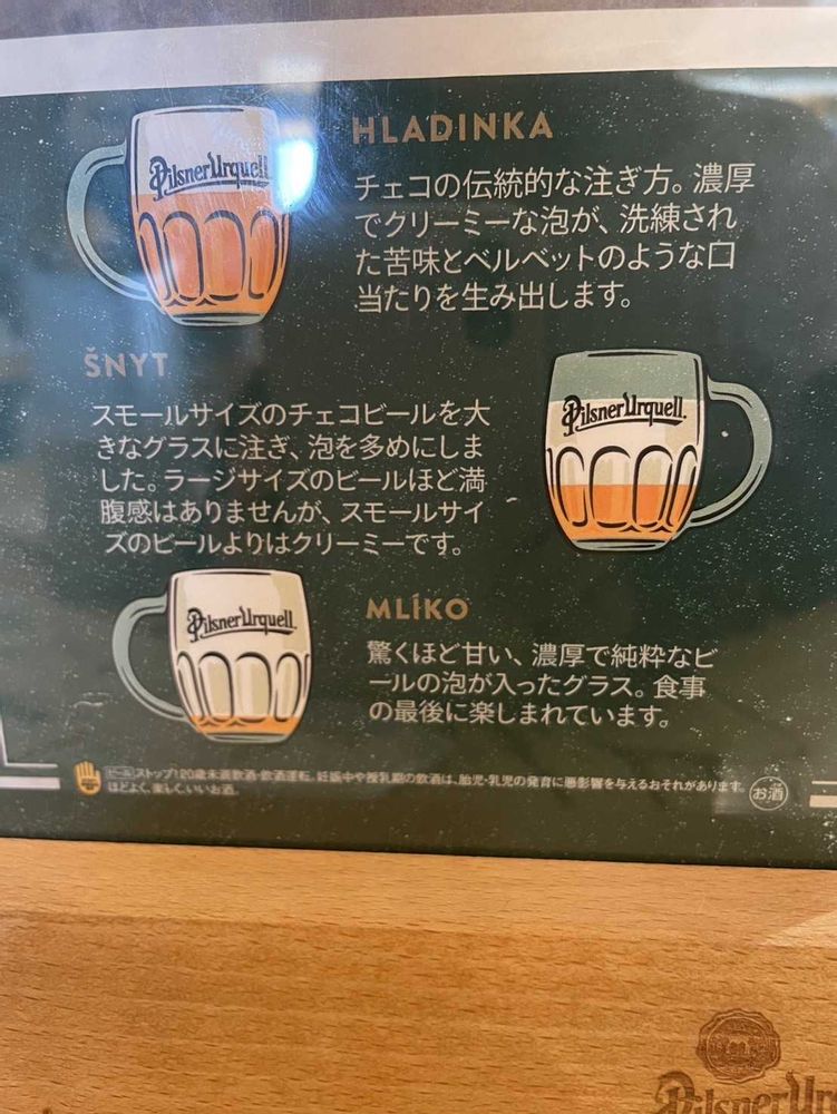 ビールの注ぎ方が3種類あり、泡の量が異なります。