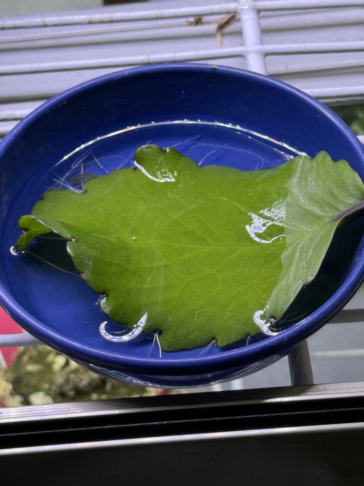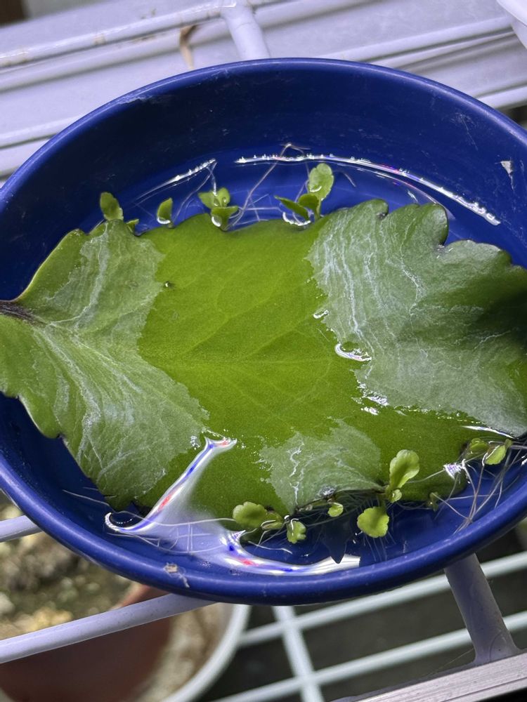 鉢皿に水を張り浮かべる(沈んでもok)だけ、10日位で葉のギザギザ部分から芽が出て来ます😊