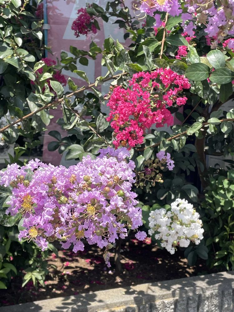 タバコ屋さん…だと思ってたら油屋さんの前でした。三色あって素敵。私がベランダで目指すはサルスベリのカラバリそろえてどれも素敵💓っていう…ちょっと狭いけどね。