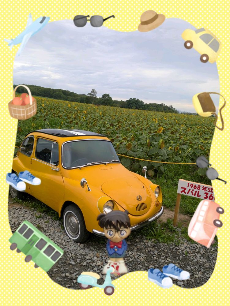 真っ黄色な、スバル🚖の車も、ひまわり🌻色で、ピッタリだね😆