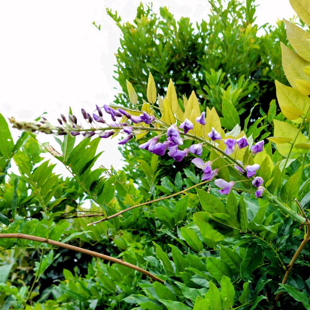 ウツギが沢山花を付けて咲いています。なぜか?藤の花がぽつりぽつりと咲いています。
