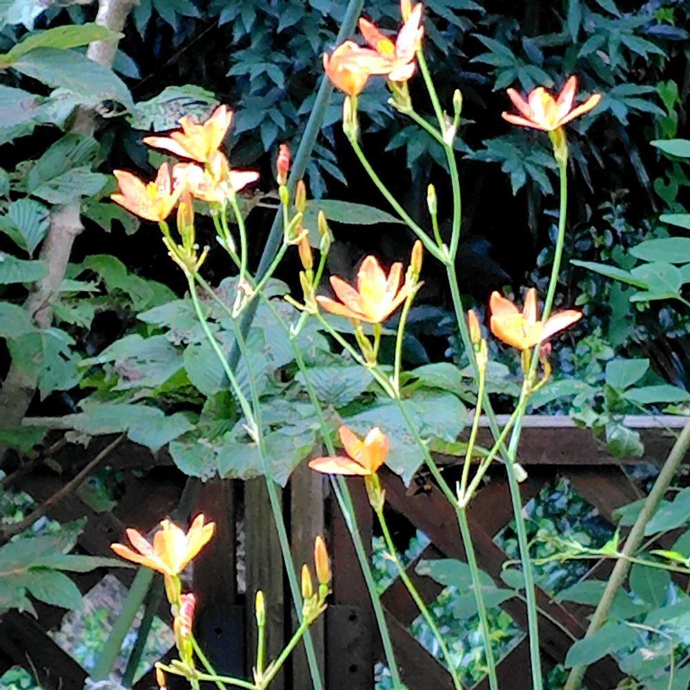 朝窓を開けるとヒオウギのオレンジの花に癒され元気が出ますよ〜😁✌️