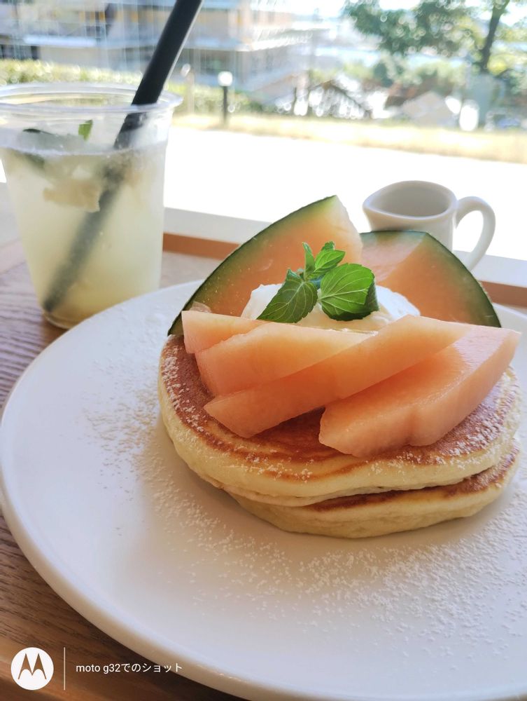 ①日和山公園の素敵なカフェ、小幡楼でパンケーキ季節のフルーツのせ(庄内砂丘のメロン🍈)
