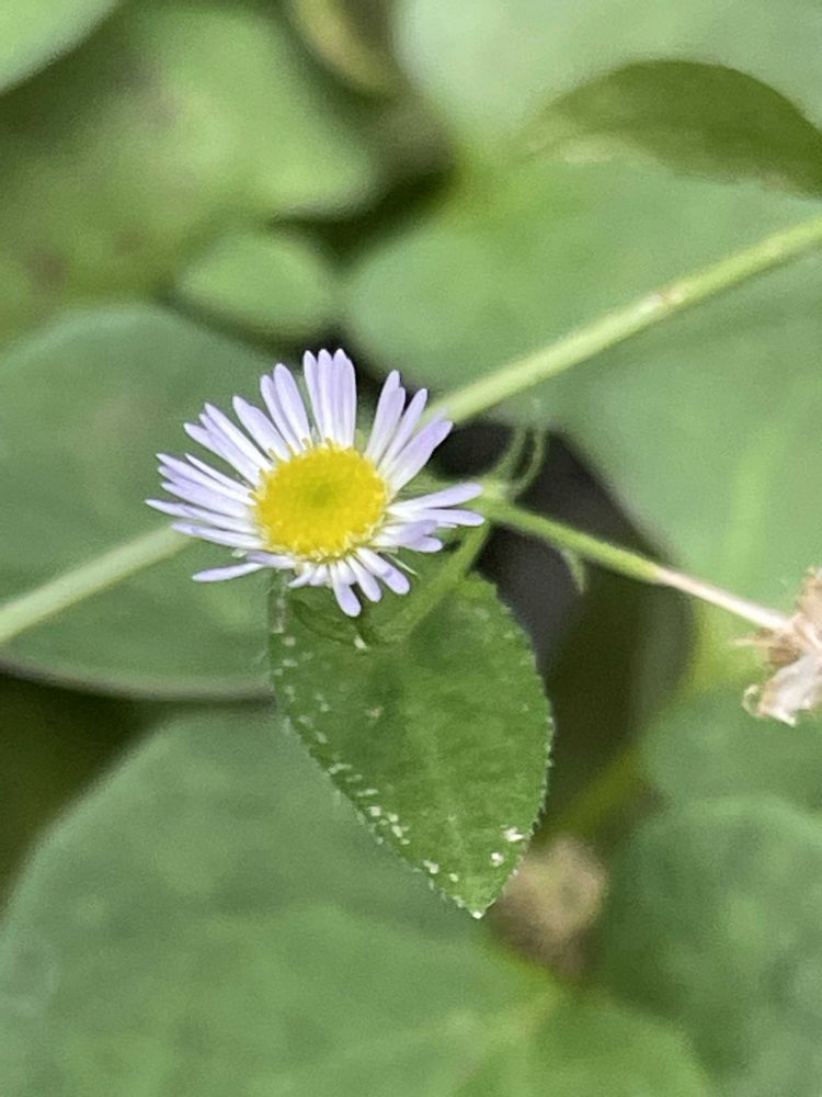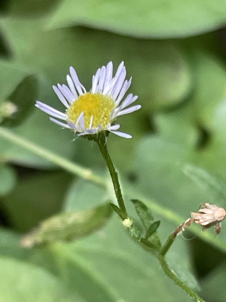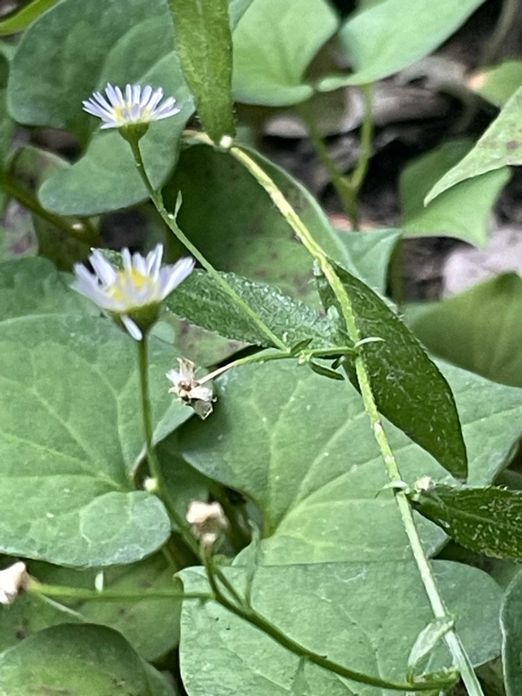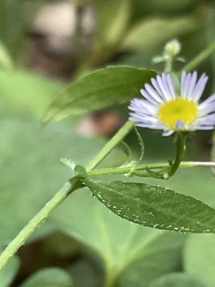 ヒメジョオンの花に見えますが、蔓草の様に、ドクダミの葉の間を横に伸びていました。