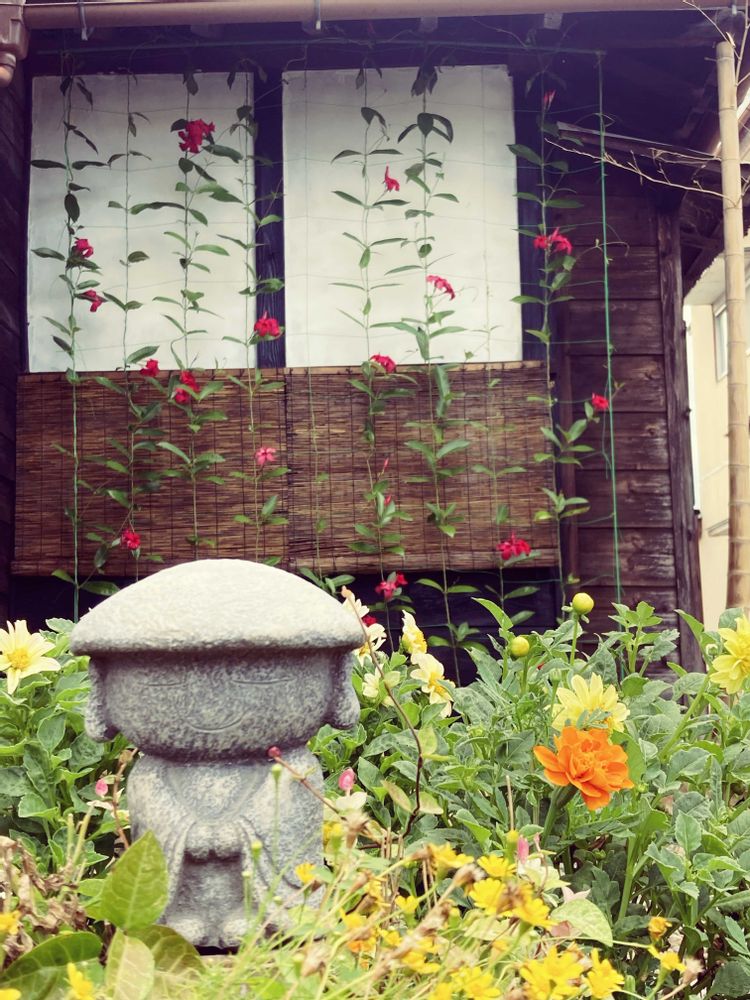 みっちゃんの性格似のおだやかなお地蔵様とコラボのお庭、すだれ
