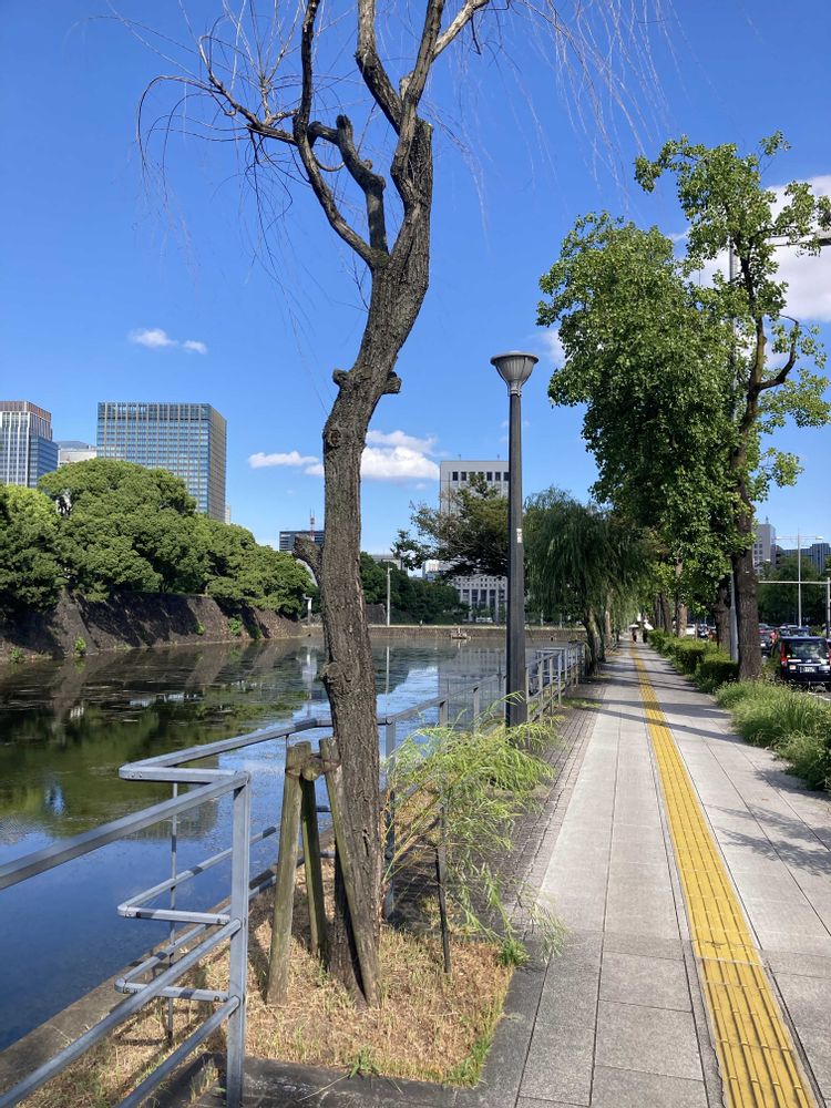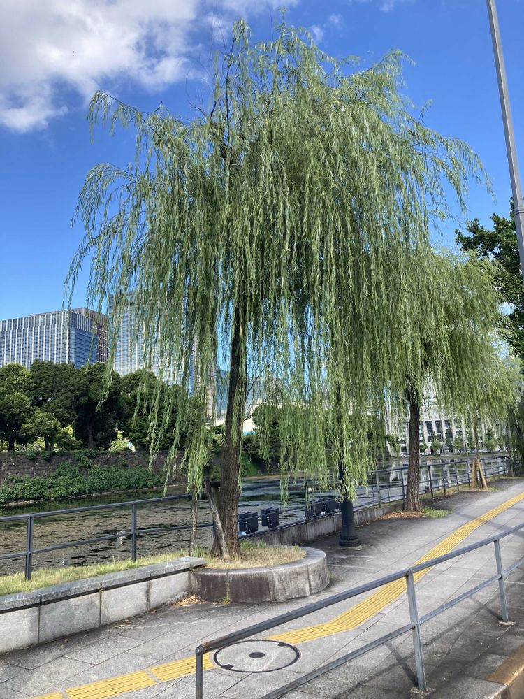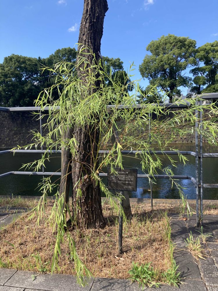 皇居凱旋濠沿いに植樹されている銀座の柳二世、三世。 その内の1本が立ち枯れしていたと思いきや、根元から新しい芽吹き。希望の光が見えて来た。