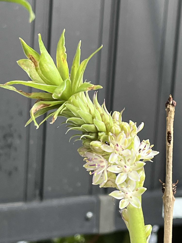 歪んでるけど パイナップルリリーの花が開いてきました🍍