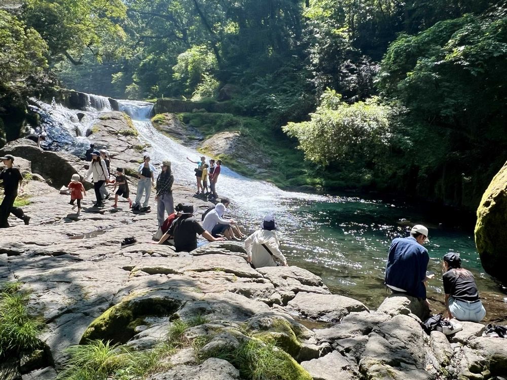 慣れてる方は簡易イスで休憩してたり、小さなお子さんも足先だけ川につけて涼んでました