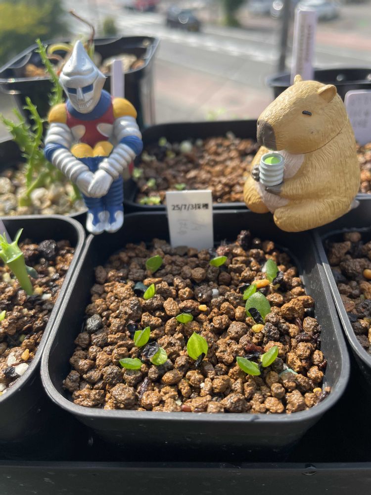 2024年3月22日に交配 2024年7月12日に結実した種を採取 2024年8月14日に種まき 2024年9月に発芽 その後、植え替えをして現在2025年7月に至る 今後の成長はアプリで記録 花が咲くまで継続