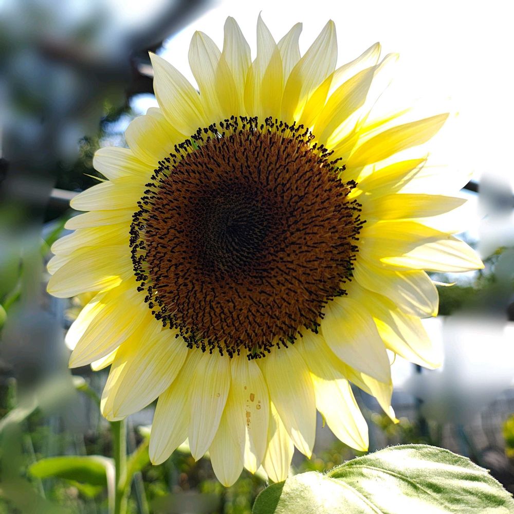 【公式】タネのタキイ 通販様(@tanenotakii_oyako)のインスタキャンペーンでいただいた種から、『白いひまわり F1ホワイトナイト』咲きました🌻