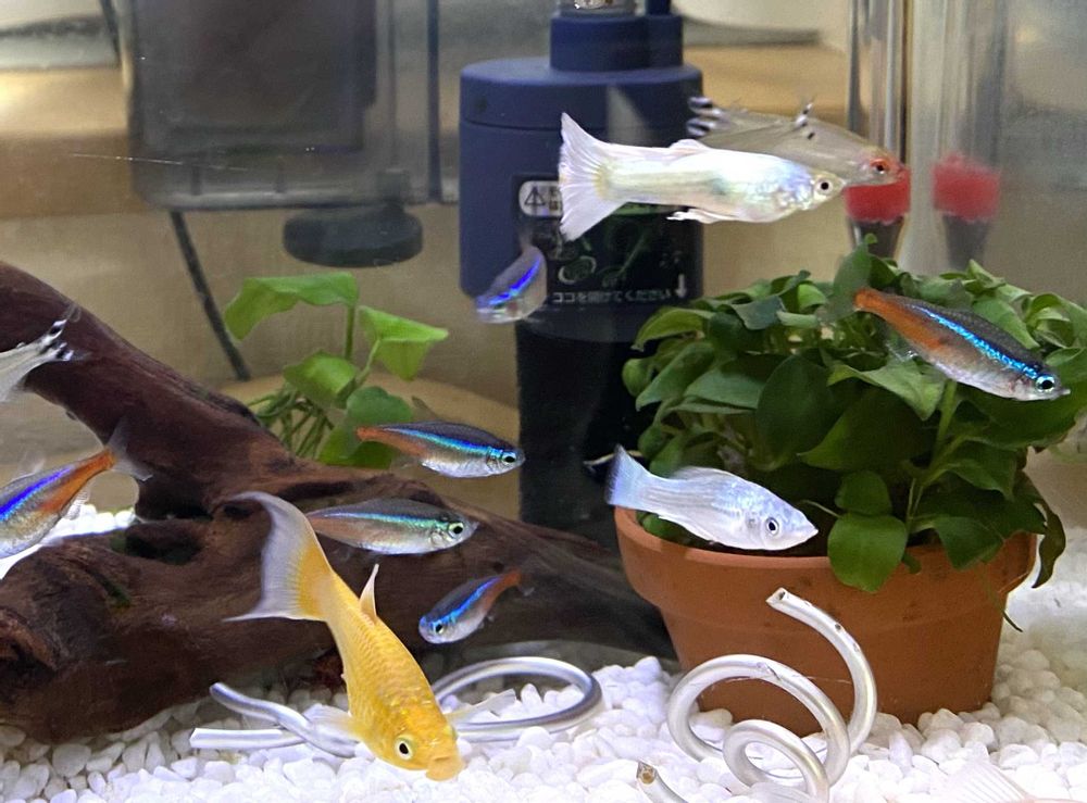 氷🧊水で水温下がるときっとお魚🐟さんも生きかえった気持ちになってるね〜キモチイイ ('꒳’ ∋ )))<スイスイ~