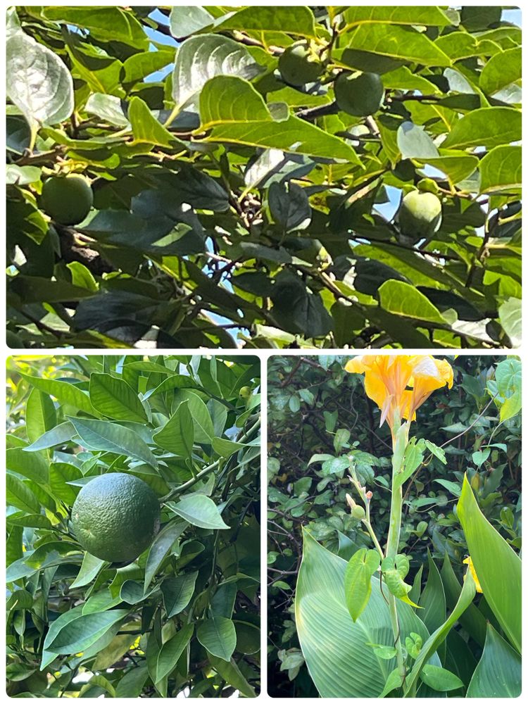 3枚目 柿ができていて、ダイダイの実が少し大きくなってきました。