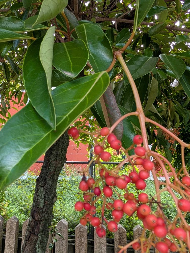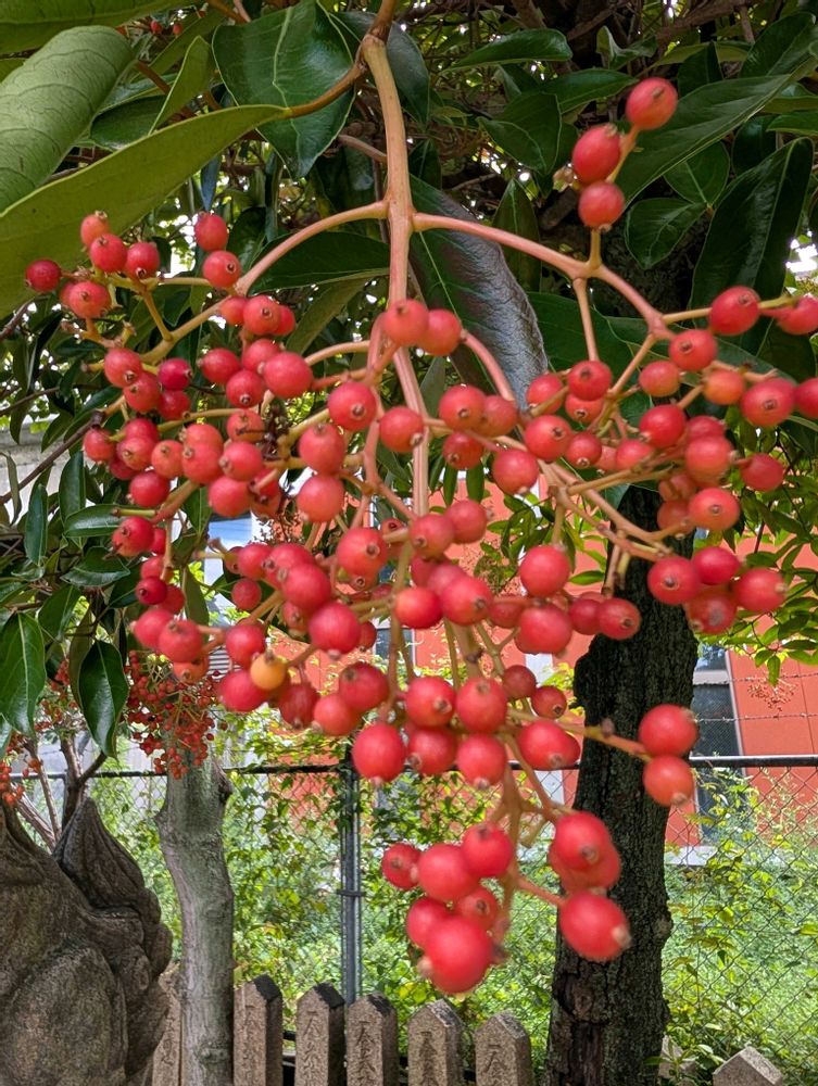 赤い実が珊瑚のようなのでサンゴジュらしいです。赤い実が熟すと黒くなって鳥さんの餌になるみたいです🍒🐦🐦
