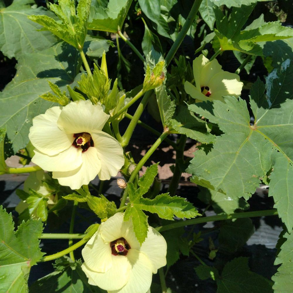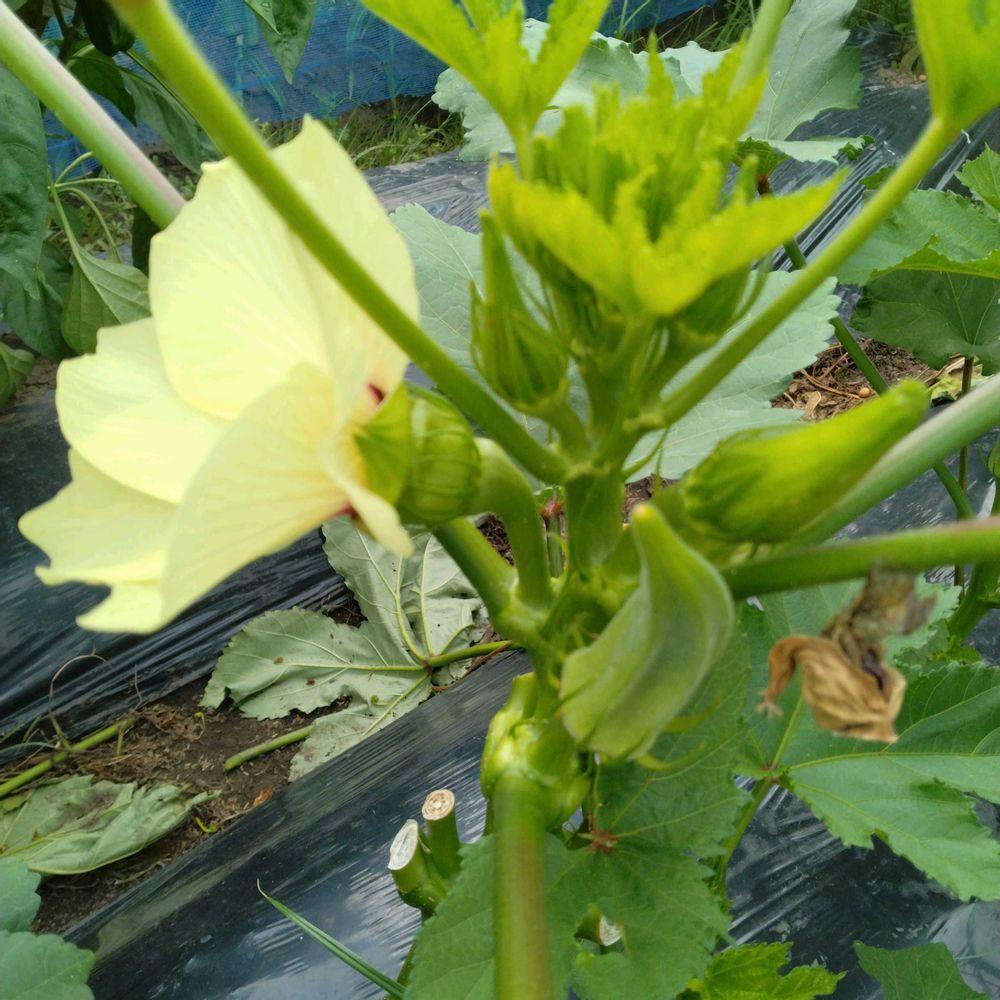 我が家で育てている夏野菜の一つ、オクラ。レモンイエローの花がとっても癒されます🥰✨
