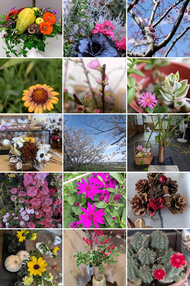 Googleフォトが「自然のブーケ💐豊田市」と題してコラージュしてくれました🍀😊✨2020年〜2025年🎃ボタニカルライフ講座🌸近所の桜並木🧑🍳お料理教室🌻喜楽亭( ^^) _旦~~🍵花遊庭~♬♬