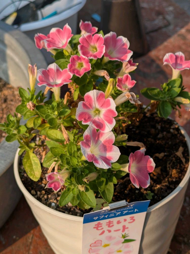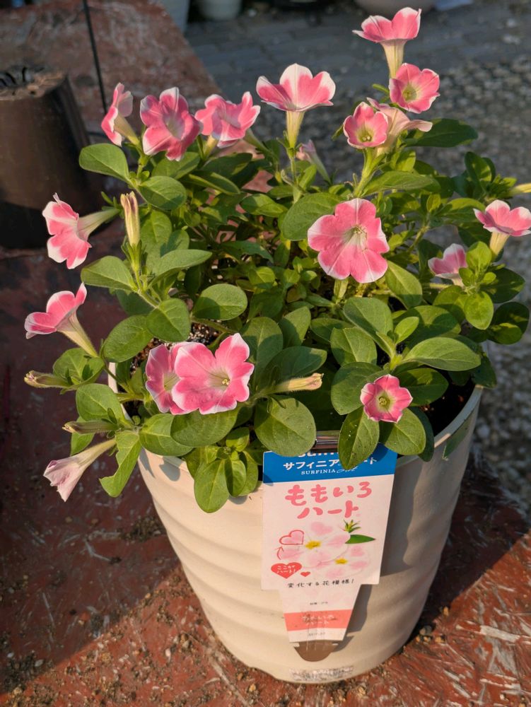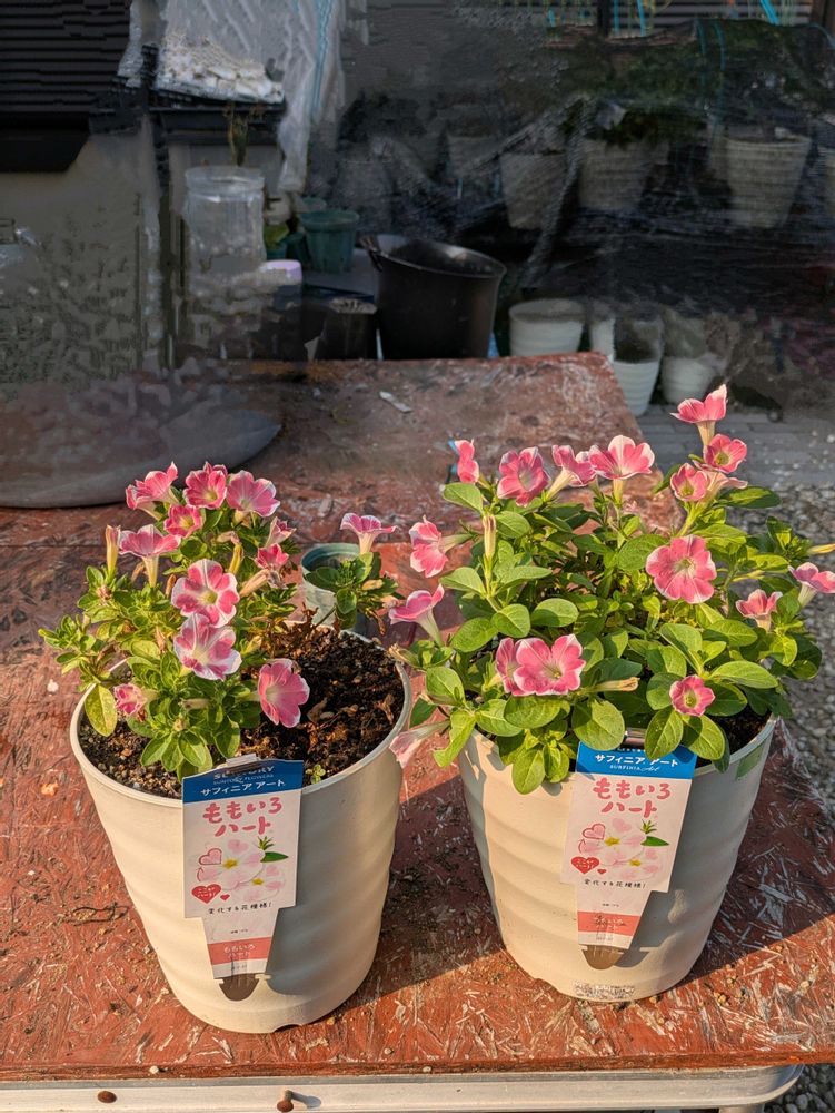 なのに、なのに出会ってしまった7月3日、母の病院帰りに立ち寄ったホムセン。さすがにこの時期にサフィニアのお値打ち品は厳し〜んじゃね(心の声)の通り、隅に追いやられたコーナーにはたくさんのももいろハートちゃん他カリブラコア😭😭