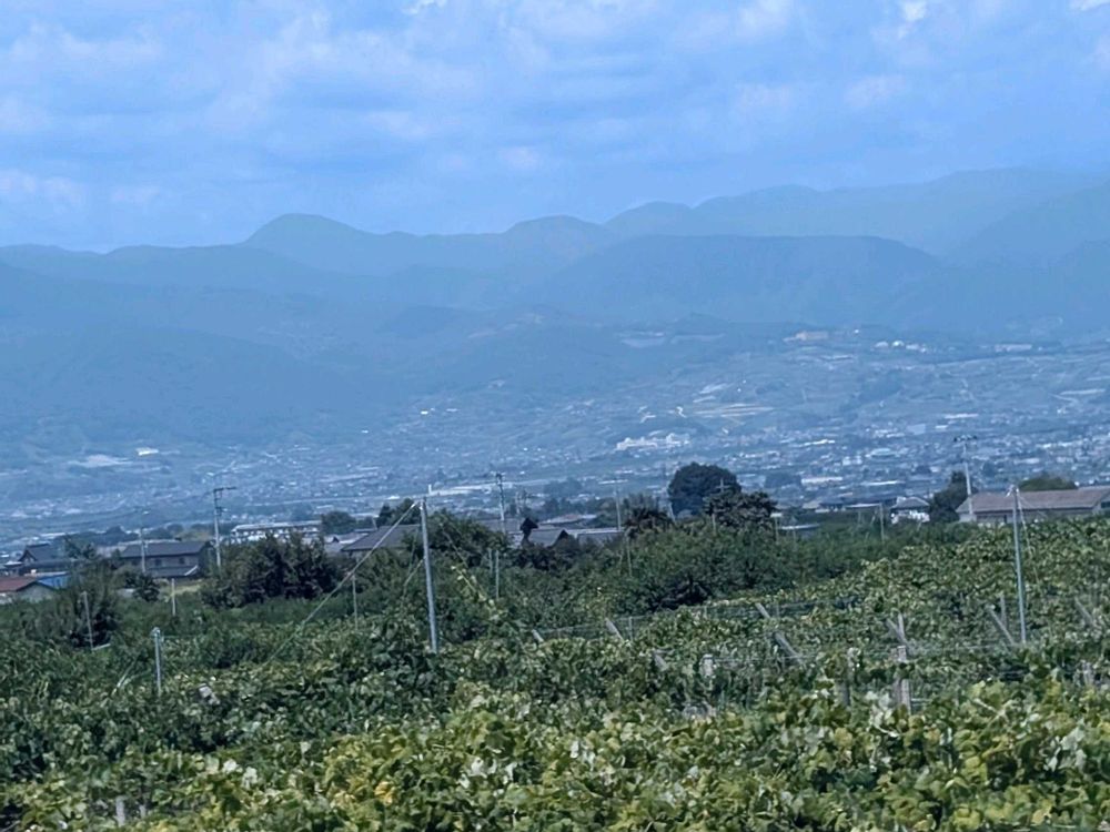 甲州市ぶどう園(少しモヤが掛かり遠くの山は霞んでました)
