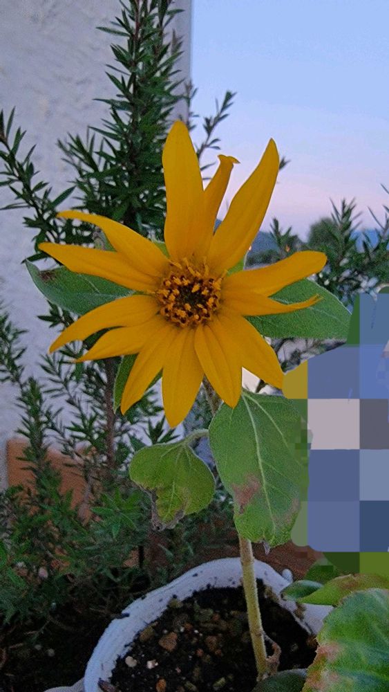 小さなベランダに、小さなひまわり🌻が咲きました。朝日に向かって元気良く咲いたひまわり🌻