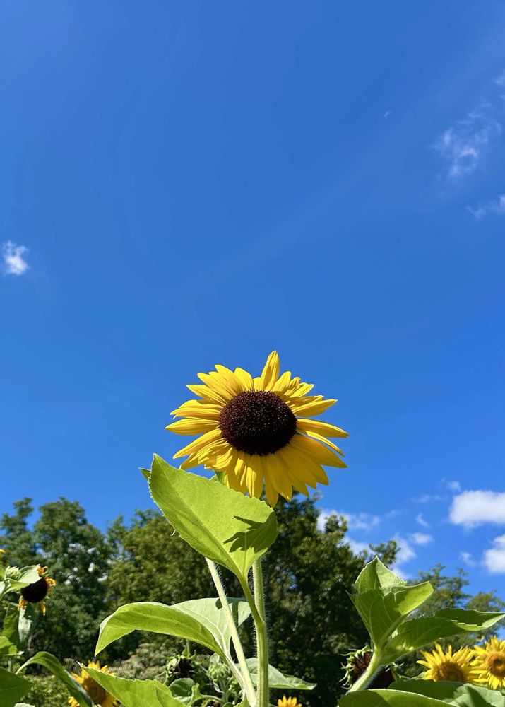 「夏休み帳」と表題を入れたくなる青空と若々しい🌻