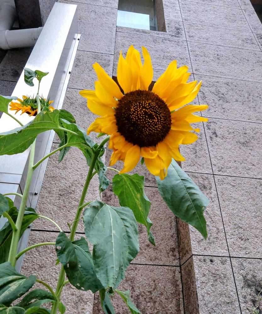 ③小学生の子が極小花壇で育てていた🌻 ちなみに今年は🫑(通勤中のウォッチ物件)