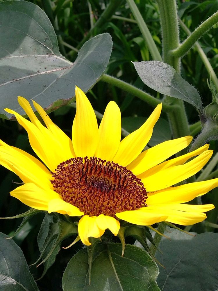 向日葵🌻元気そうで😀、散歩仲間で育てた向日葵虫に食べられて可哀想です😢