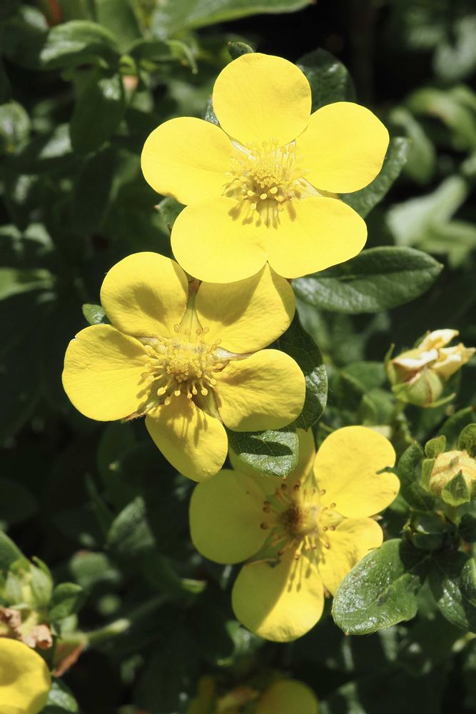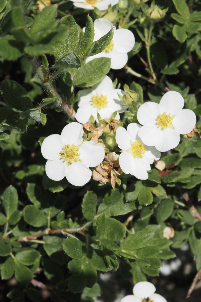 ③ キンロバイ(金露梅)バラ科キンロバイ属の落葉小低木。その白花品種の④ ギンロバイ(銀露梅)、別名、ハクロバイ(白露梅)。