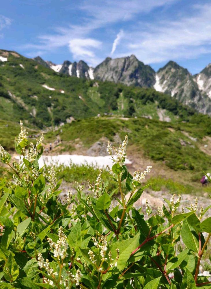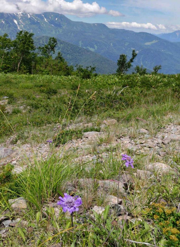 八方尾根ではタカネマツムシソウやオヤマソバも咲き始めていました。白馬の山並みと一緒に見てくださいね💜🤍✨🏔️