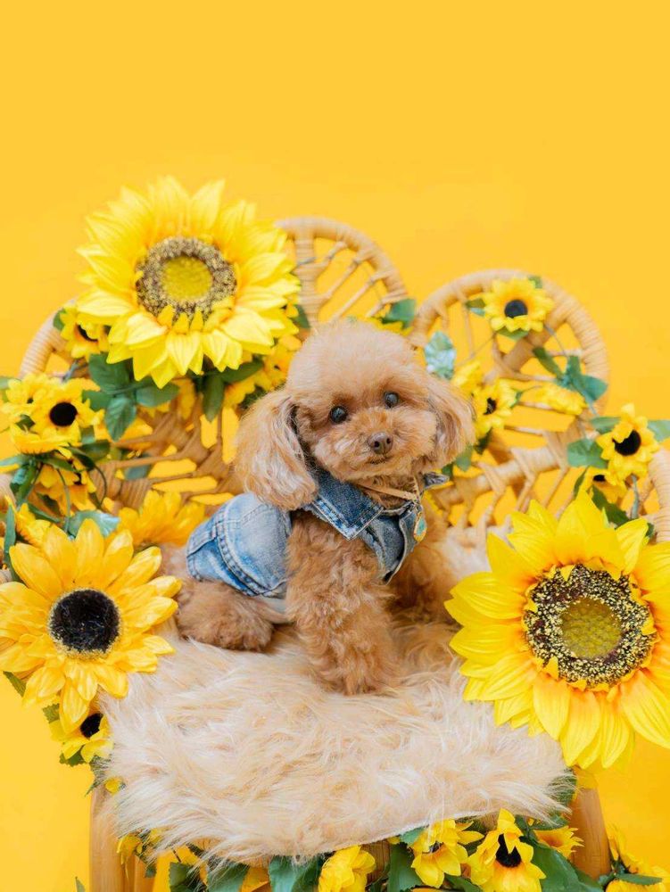 ✤我が家のヒマワリ、トップバッターは🌻🐕️チビわんこのセラ選手♂