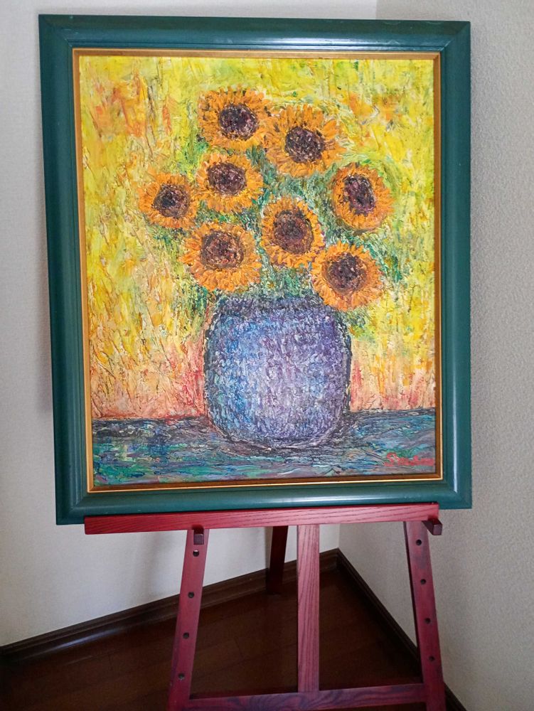 ✤5枚目は、🎨🖊️🌻主人が以前に描いた油絵😅 玄関内正面、インテリア代わり🤭💧イーゼルに置いてます。