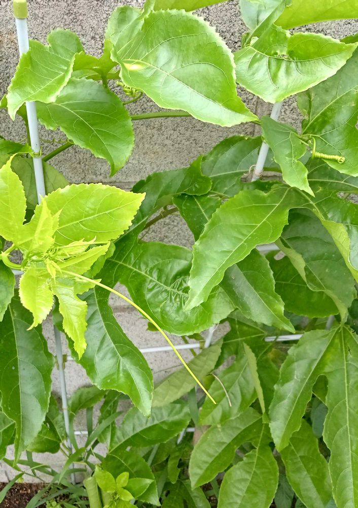 パッションフルーツ、期待してるんだけど、去年もモリモリだったんだよね、葉っぱ🌿